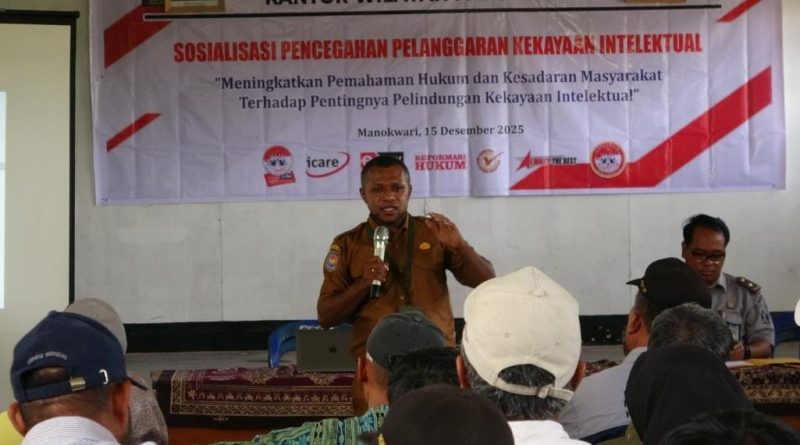 MANOKWARI, gardapapua.com —Bertempat di Gedung Serbaguna Kampung Prafi Mulya, Kantor Wilayah Kementerian Hukum Papua Barat (Kanwil Kemenkum Pabar) menyelenggarakan Sosialisasi Pencegahan Pelanggaran Kekayaan Intelektual dengan tema “Meningkatkan Pemahaman Hukum dan Kesadaran Masyarakat Terhadap Pentingnya Pelindungan Kekayaan Intelektual”.