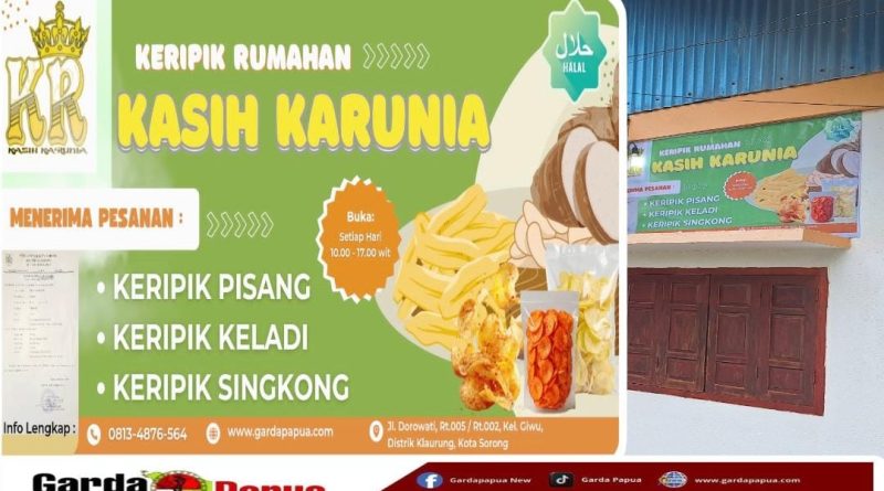 Sama seperti beberapa olahan Keripik Pabrikan dan Beberapa merk terkenal lainnya, Keripik dengan brand Kasih Karunia, milik warga kelurahan Giwu, Distrik Klaurung, Kota Sorong, Papua Barat Daya (PBD), telah kembali dalam tampilan dan ukuran serta harga yang terjangkau dan berfokus pada olahan jenis keripik Pisang, Keladi, dan Singkong, bertekstur renyah dengan aneka pilihan rasa gurdasin (gurih, pedas, dan asin).