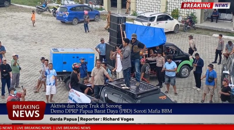 SORONG, gardapapua.com —- Menyikapi maraknya dugaan aktivitas para mafia BBM Subsidi di Wilayah Sorong Raya, Khususnya di Kota Sorong, Provinsi Papua Barat Daya (PBD) Ratusan masyarakat yang tergabung dalam Aliansi Supir Truck dan Aktivis Pemerhati Sosial, menggelar aksi unjuk rasa di kawasan Kantor Dewan Perwakilan Rakyat Provinsi (DPRP) Papua Barat Daya, Jalan Pendidikan Kilometer 8, Kota Sorong, pada Senin (26/1/2026).