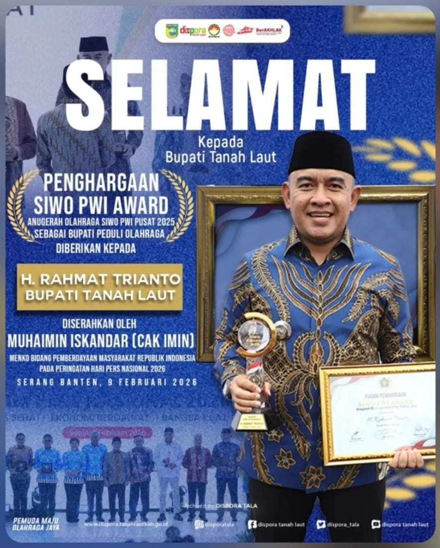 Suryansyah mengapresiasi semua pihaknya, khususnya Bupati Tanah Laut, H. Rahmat Trianto, yang menerima SIWO Award 2025 Kategori Bupati Peduli Olahraga.