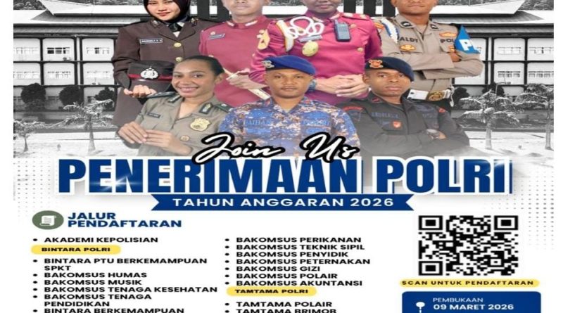 MANOKWARI, gardapapua.com — Kepolisian Daerah Papua Barat resmi membuka penerimaan anggota Polri T.A. 2026 mulai tanggal 9 s/d 30 Maret 2026, khususnya para generasi muda di wilayah Papua Barat.