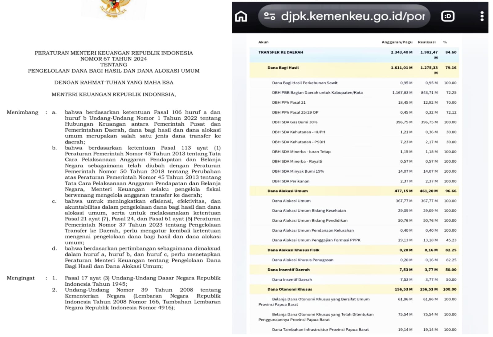 Mekanisme penyaluran ini diatur dalam peraturan menteri keuangan republik indonesia, nomor 67 tahun 2024, tentang pengelolaan Dana Bagi Hasil (DBH) dan Dana Alokasi Umum (DAU).